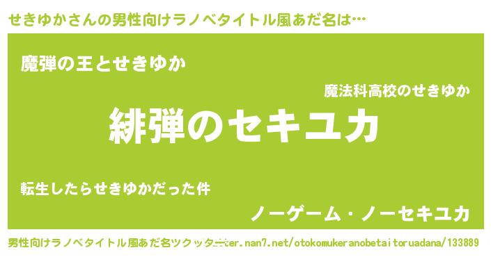| 女子向けラノベタイトル風あだ名 | 『シンデレラせきゆか家の靴箱館』 |