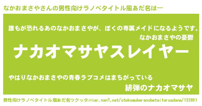| ヒーロー風カッコイイあだ名 | 『ネオナカオマサヤ』『仮面ナカダー』 |