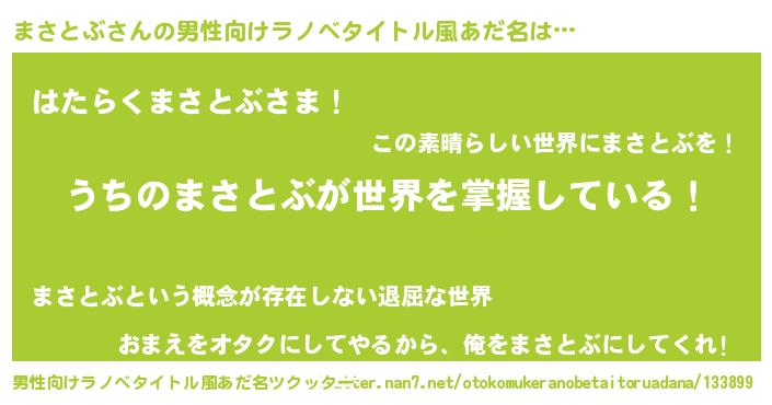 | 女子向けラノベタイトル風あだ名 | 『男装まさとぶの憂鬱な任務』 |