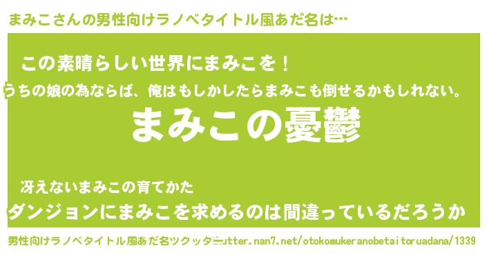 | 女子向けラノベタイトル風あだ名 | 『まみこ姫と円卓の騎士』 |