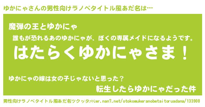 | 意味不明あだ名 | 『住所不定無職ゆかにゃ(5歳)』 |