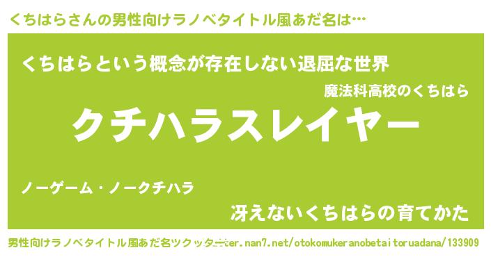 | ヘコむあだ名 | 『くちはら(小並感)』『くちにゅー』 |