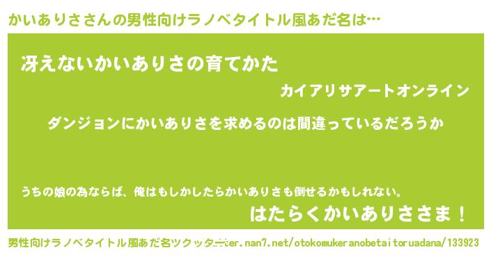 | ヒーロー風カッコイイあだ名 | 『暗黒騎士カイ』『スーパーカイアリサ』 |