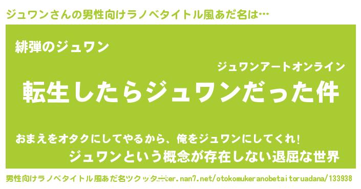 | ヘコむあだ名 | 『ジュワン(小並感)』『ジュにゅー』 |