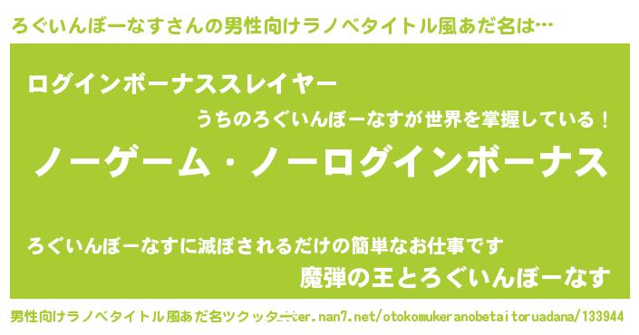 | ヒーロー風カッコイイあだ名 | 『慈愛の使者ろぐいんぼーなす』 |