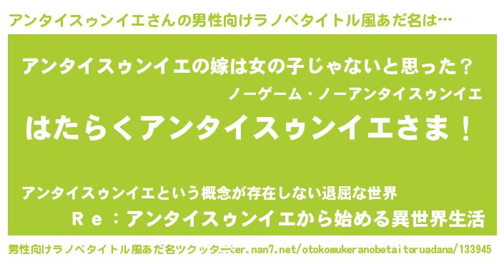 | 胡散臭い通販商品みたいなあだ名 | 『信頼と実績のペンダント…その名も「アンタイスゥンイエ」』 |