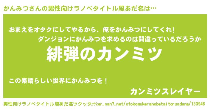 | 女子向けラノベタイトル風あだ名 | 『シンデレラかんみつ家の靴箱館』 |
