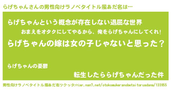 | 女子向けラノベタイトル風あだ名 | 『らげちゃん様がみてる』 |