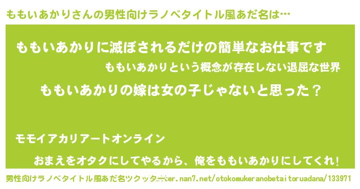 | 女子向けラノベタイトル風あだ名 | 『ももいあかり様がみてる』 |