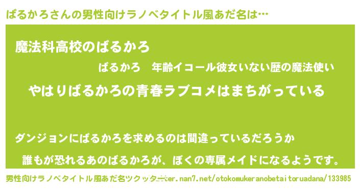 | ヘコむあだ名 | 『豆乳』『ばるかろ(爆)』『ばるお』 |