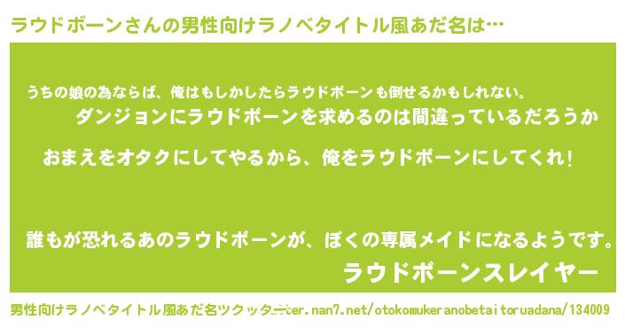 | 女子向けラノベタイトル風あだ名 | 『ラウドボーン夫妻のなれそめ』 |