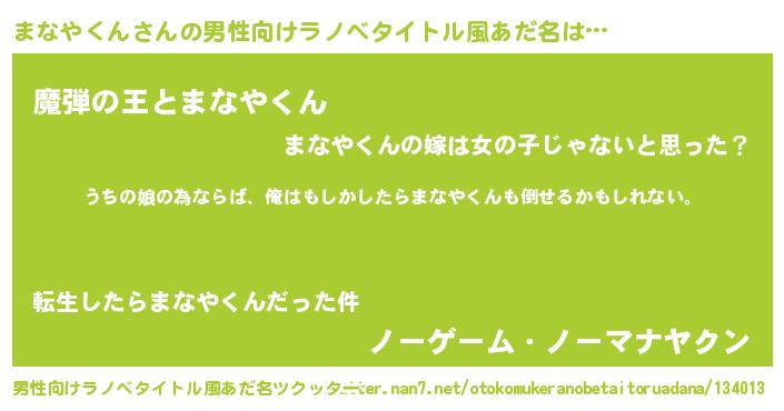 | 女子向けラノベタイトル風あだ名 | 『まなやくん伯爵の花嫁』 |