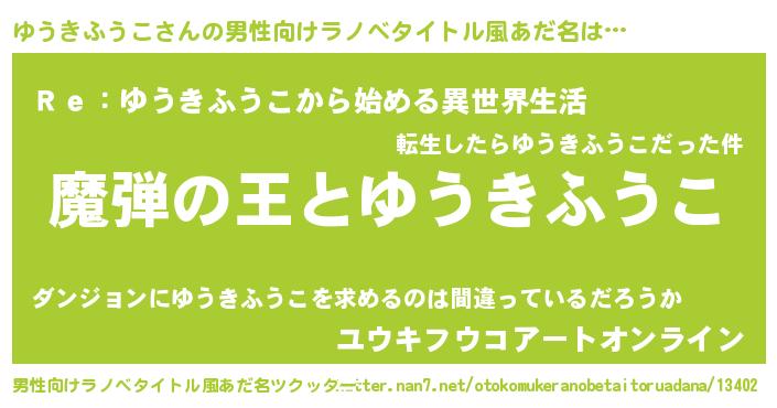 | ピコ太郎風あだ名 | 『ユコ史郎』『ユウ八郎』『ユユ太郎』 |