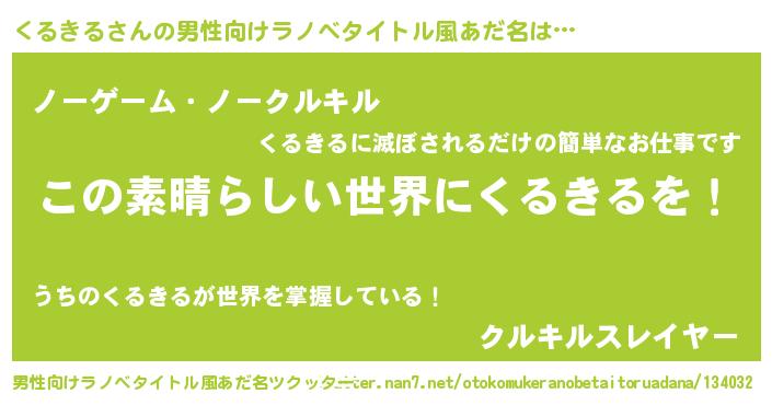 | 女子向けラノベタイトル風あだ名 | 『悪役くるきるに転生したようですが、知った事ではありません』 |