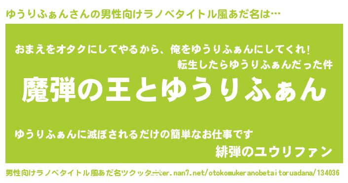 | ヒーロー風カッコイイあだ名 | 『仮面ユウダー』『最強戦士ユウリファン』 |