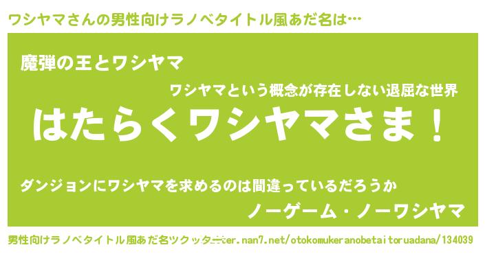 | 胡散臭い通販商品みたいなあだ名 | 『世界中を虜にした100年もののヴィンテージワイン…その名も「ワシヤマ」』 |