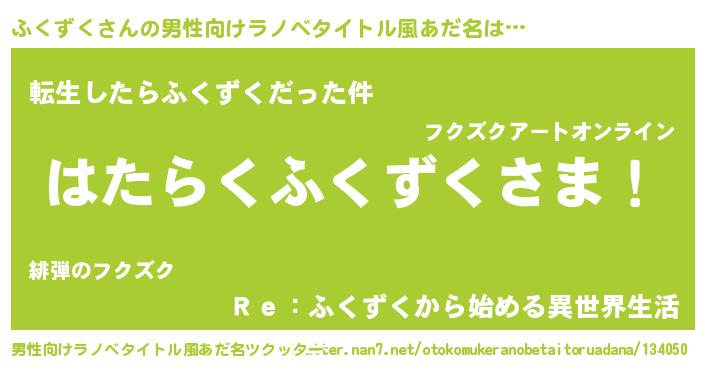 | 意味不明あだ名 | 『めかぶ科ふくずく属』『自称ふくずく』 |