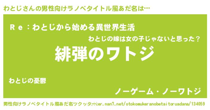| 意味不明あだ名 | 『自称わとじ』『眠気覚ましガムわとじ味』 |