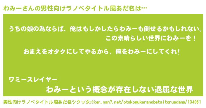 | ヒーロー風カッコイイあだ名 | 『友情の使者わみー』『ネオワミー』 |