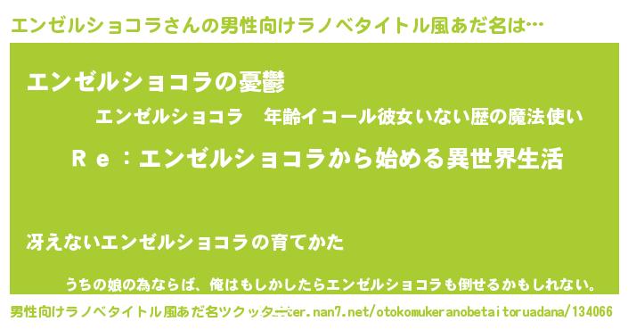 | 女子向けラノベタイトル風あだ名 | 『闇のエンゼルショコラ』 |