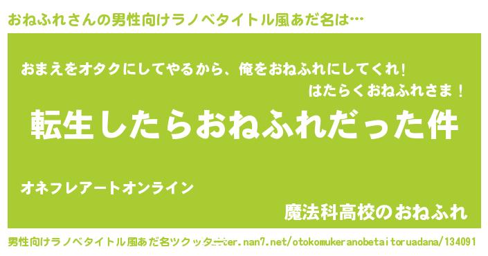 | 女子向けラノベタイトル風あだ名 | 『婚約破棄系悪役おねふれに転生したので、保身に走りました。』 |