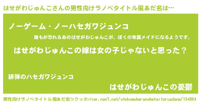 | 女子向けラノベタイトル風あだ名 | 『はせがわじゅんこの卵を拾いまして』 |