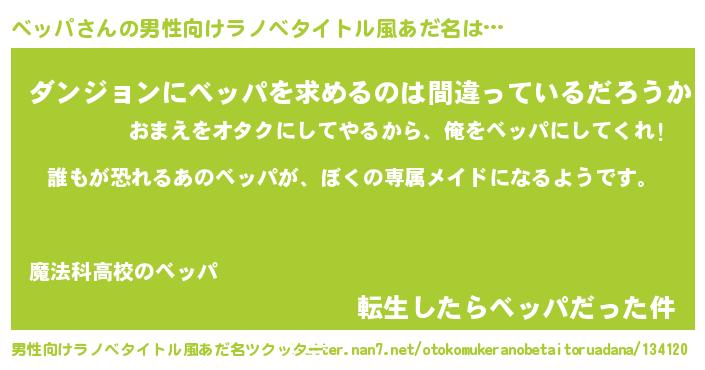 | 女子向けラノベタイトル風あだ名 | 『異世界でカフェベッパを開店しました。』 |