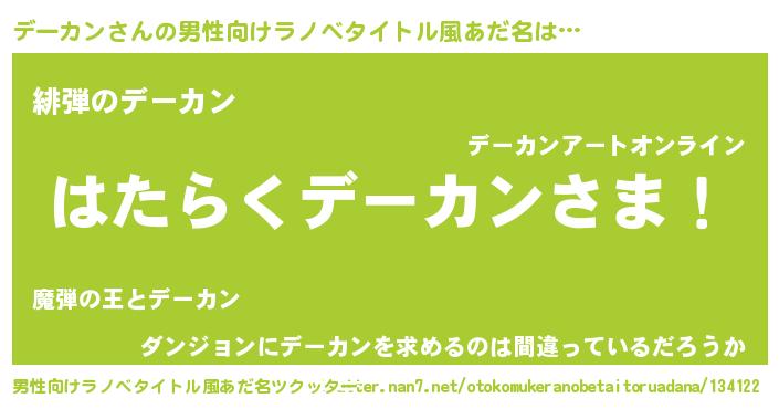 | 胡散臭い通販商品みたいなあだ名 | 『信頼と実績のサプリメント…その名も「デーカン」』 |
