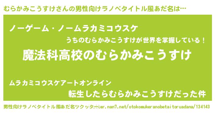 | 女子向けラノベタイトル風あだ名 | 『むらかみこうすけなんてお断りですっ。』 |