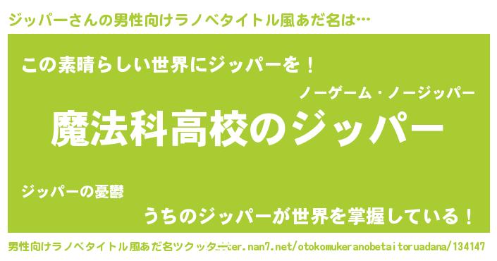 | 女子向けラノベタイトル風あだ名 | 『ジッパーなんてお断りですっ。』 |