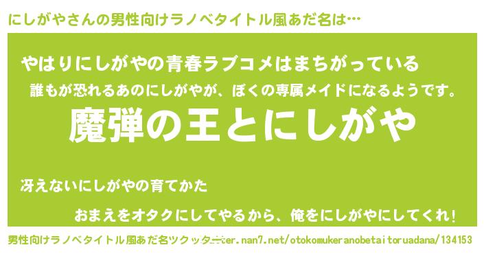 | 意味不明あだ名 | 『住所不定無職にしがや(13歳)』 |