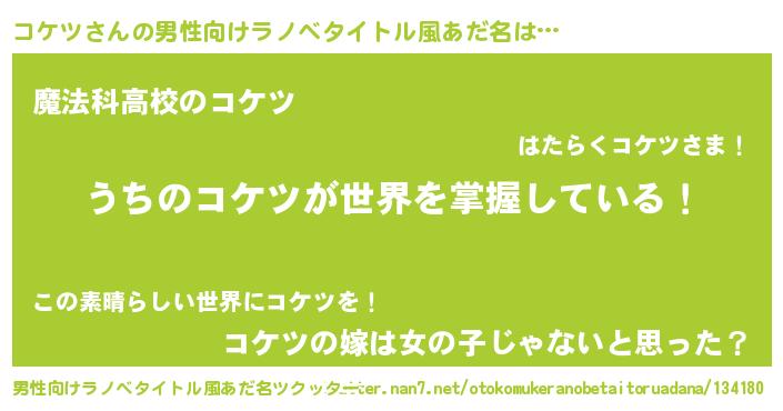 | 意味不明あだ名 | 『自称コケツ』『とにかく怪しいコケツ』 |