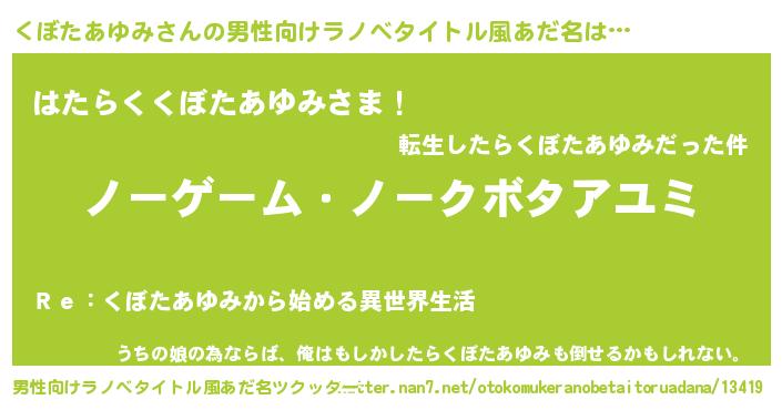 | 女子向けラノベタイトル風あだ名 | 『くぼたあゆみ恋絵巻』 |
