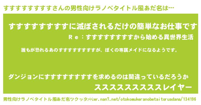 | 胡散臭い通販商品みたいなあだ名 | 『来世でも幸せになれる健康食品…その名も「すすすすすすすす」』 |