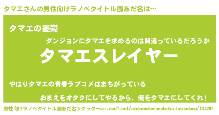 | 胡散臭い通販商品みたいなあだ名 | 『必ず成功する水晶球…その名も「タマエ」』 |