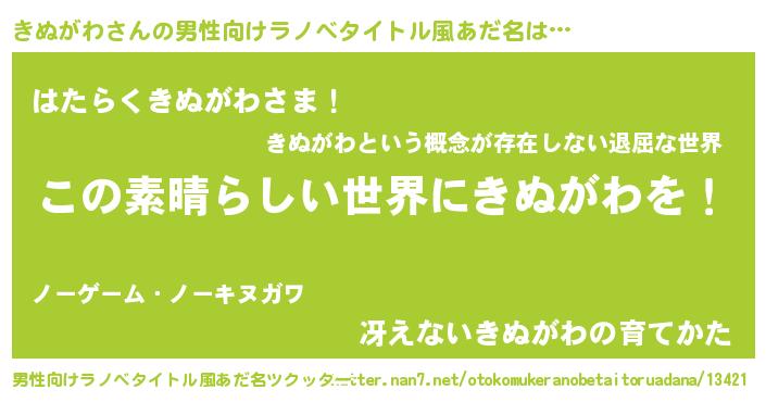 | 意味不明あだ名 | 『住所不定無職きぬがわ(86歳)』 |
