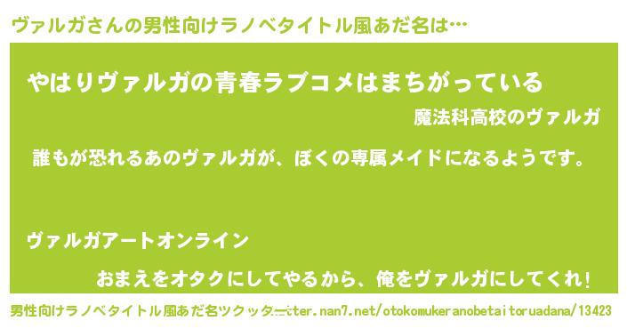 | 女子向けラノベタイトル風あだ名 | 『ヴァルガの契約王妃』『ヴァルガ恋絵巻』 |