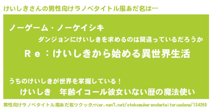 | ヒーロー風カッコイイあだ名 | 『サイバー戦士ケイシキ』『魔戒騎士ケイ』 |