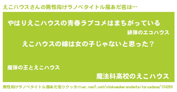 | 胡散臭い通販商品みたいなあだ名 | 『全米が絶賛したサプリメント…その名も「えこハウス」』 |