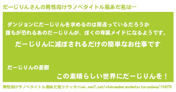 | ヘコむあだ名 | 『だーっちょ』『だーじりん(苦笑)』 |