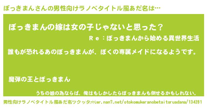 | ヘコむあだ名 | 『ぼっきまん(苦笑)』『ぼっお』 |