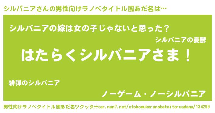 | 胡散臭い通販商品みたいなあだ名 | 『信頼と実績のサプリメント…その名も「シルバニア」』 |