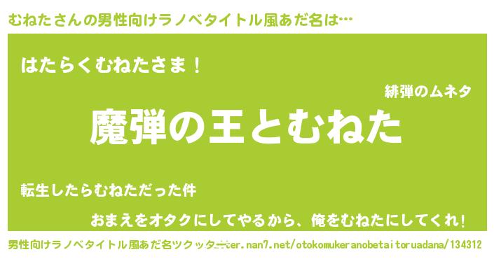 | 女子向けラノベタイトル風あだ名 | 『むねたが死なない童話 林檎のむねたの診療簿』 |