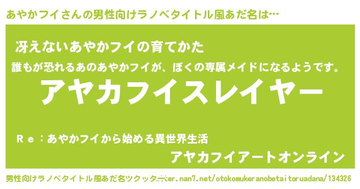 | 胡散臭い通販商品みたいなあだ名 | 『必ず成功するブレスレット…その名も「あやかフイ」』 |