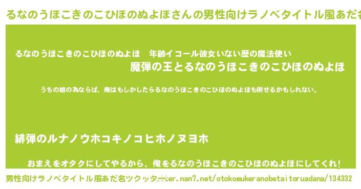 るなのうほこきのこひほのぬよほさんの男性向けラノベタイトル風あだ名をツクッター!