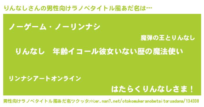 | 女子向けラノベタイトル風あだ名 | 『りんなしの玉の輿計画!』 |