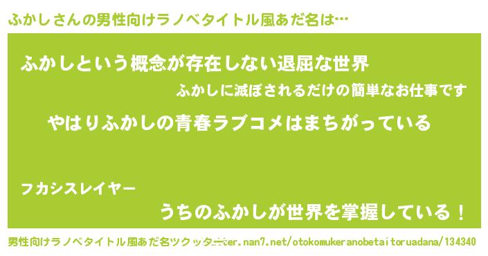 | 女子向けラノベタイトル風あだ名 | 『ふかしの雑貨屋さん』 |