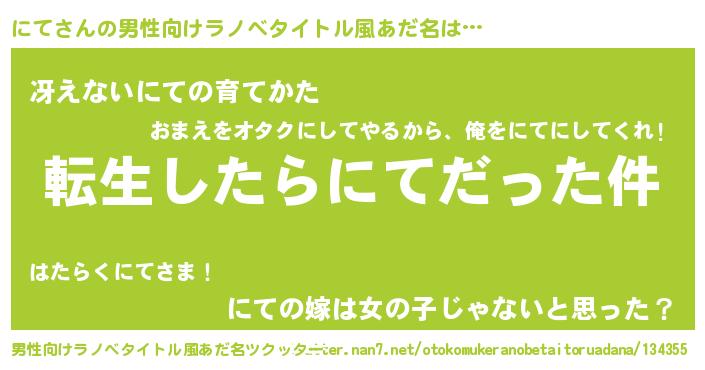 | 女子向けラノベタイトル風あだ名 | 『にての玉の輿計画!』 |