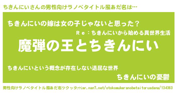| 女子向けラノベタイトル風あだ名 | 『乙女ゲームの破滅フラグしかない悪役ちきんにいに転生してしまった…』 |