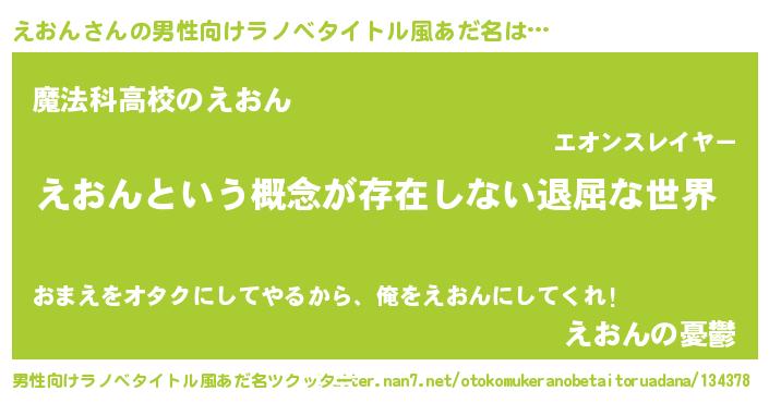 | 女子向けラノベタイトル風あだ名 | 『異世界で失敗しない100のえおん』 |